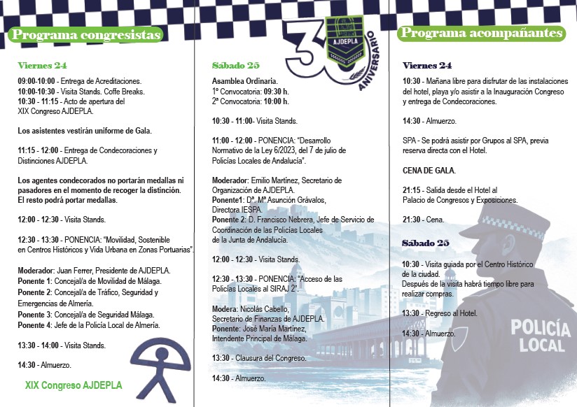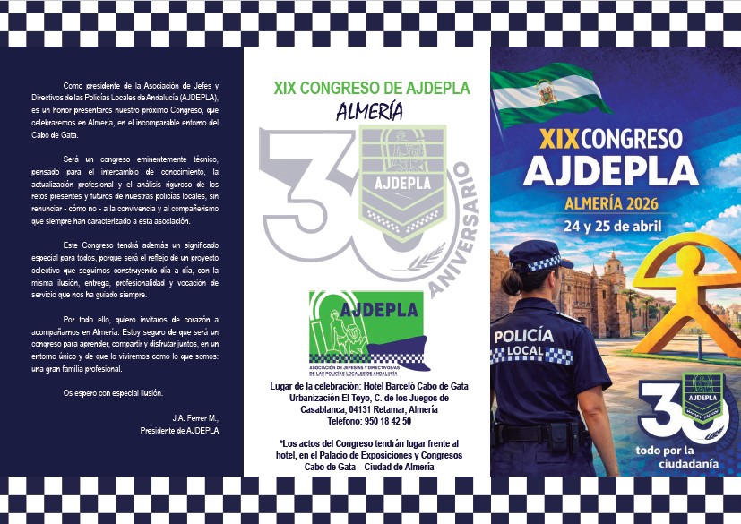 LA ASOCIACIÓN DE JEFES Y DIRECTIVOS DE LAS POLICÍAS LOCALES DE ANDALUCÍA, AJDEPLA, ACUERDA CELEBRAR SU PRÓXIMO CONGRESO TÉCNICO POLICIAL EN ALMERÍA